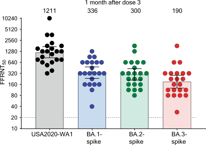 Neutralization Of Omicron Ba 1 Ba 2 And Ba 3 Sars Cov 2 By 3 Doses Of Bnt162b2 Vaccine Nature Communications